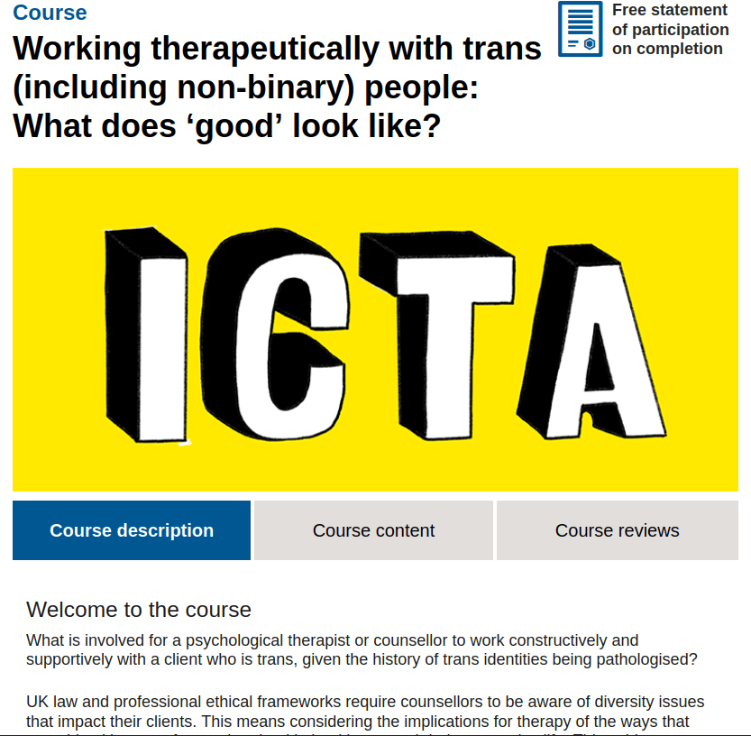 Working therapeutically with trans people: Free 7 hour online OU course co-authored by Sam